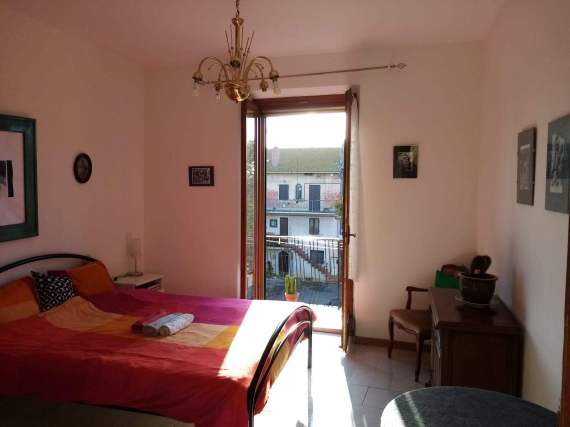 Het is  een tweepersoons kamer met een tweepersoons bed.  De kamer geeft direct toegang tot het balkon dat uitkijkt op het dorpsplein en de dorpskerk De badkamer wordt gedeeld met maximaal twee andere gasten. Beddengoed en verschillende handdoeken zijn op de kamer aanwezig.